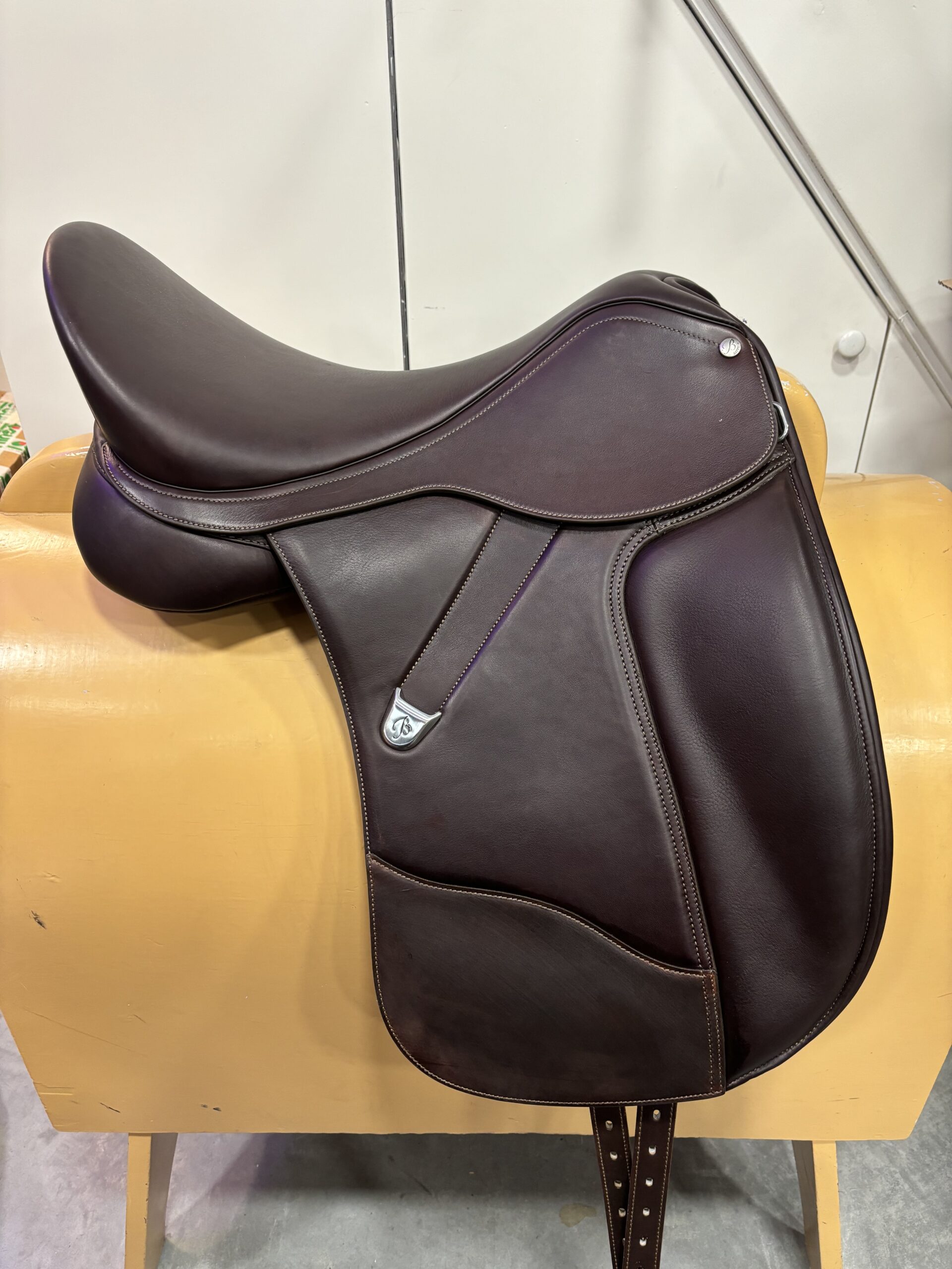 Bates Luxe dressuurzadel 18 inch dressuurzadel met verwisselbaar kopijzer, zit medium in. Dit zadel is een showroom model geweest, hierdoor valt hij onder de tweedehands voorwaarden. Zadel is nieuw, wil je hem uitproberen dan raden we een pasconsult aan zodat het zadel in dezelfde staat blijft. Nieuwprijs €2595,- Zadel is bruin.