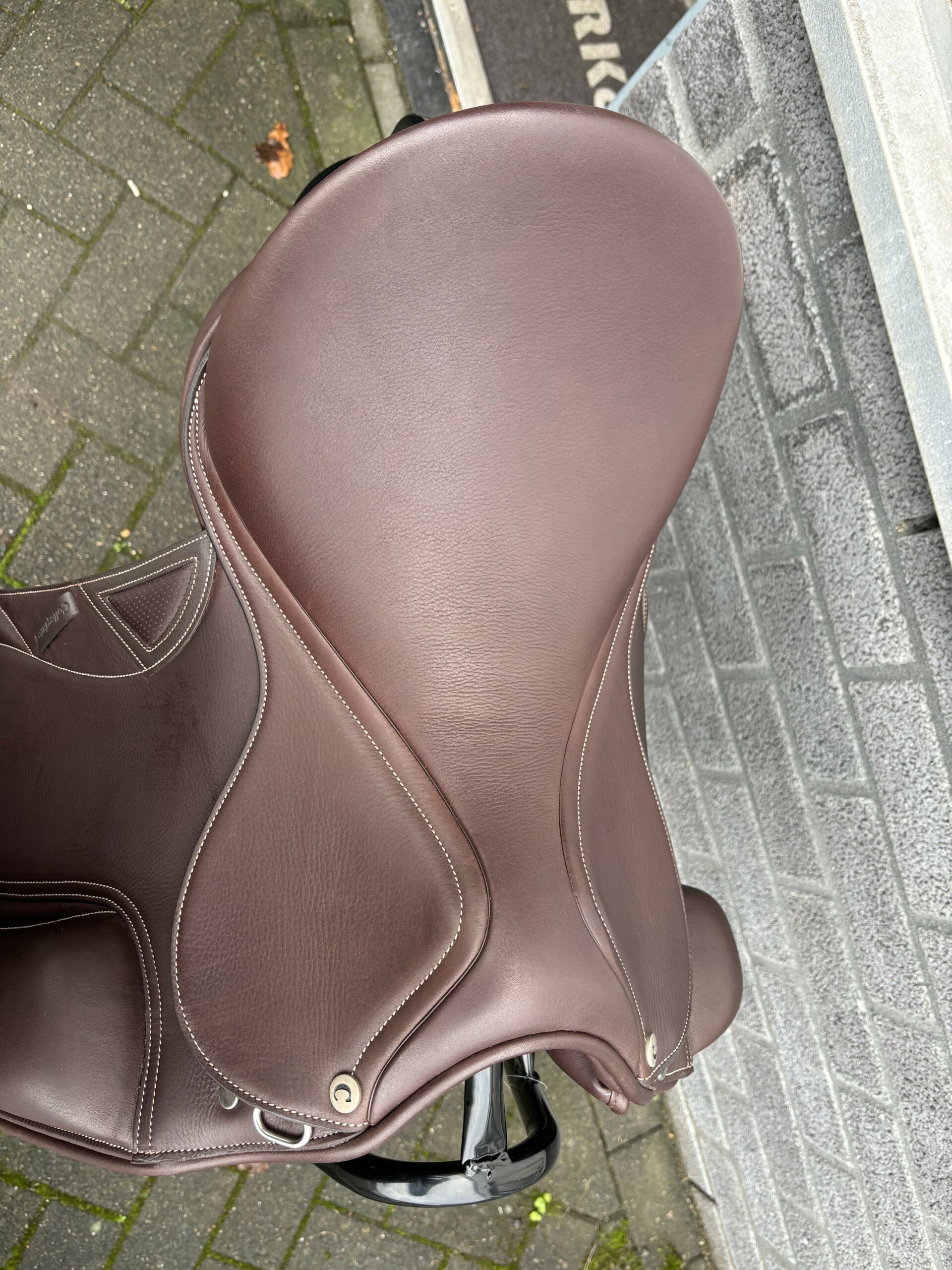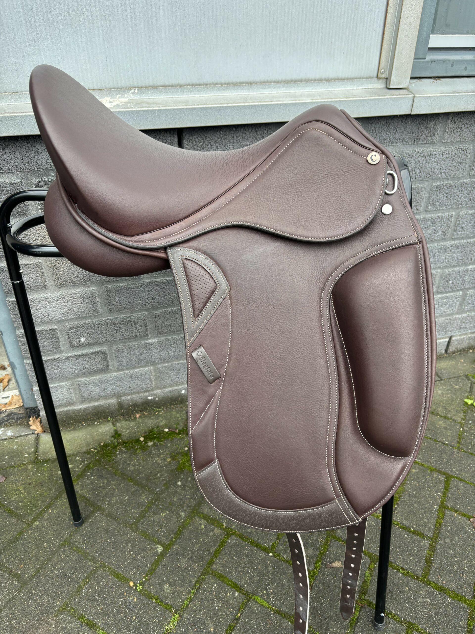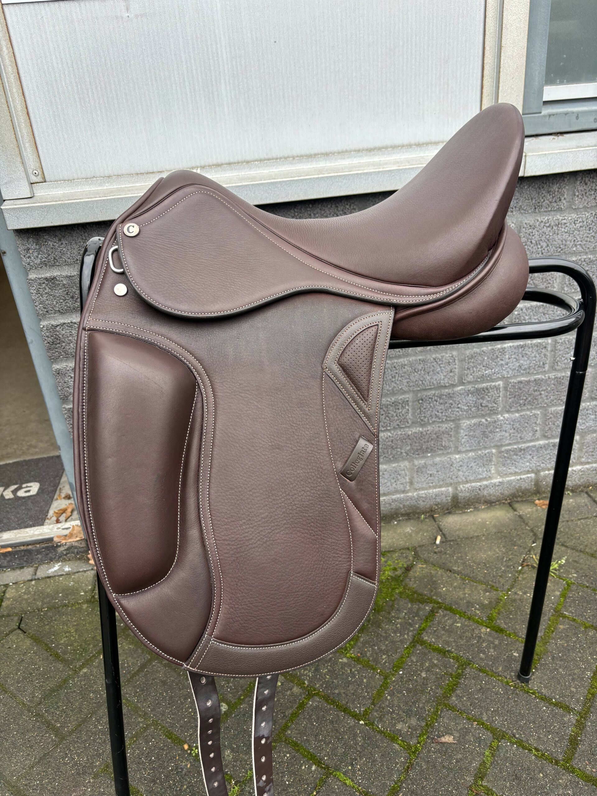 Collegiate 17.5 inch dressuurzadel. Valt meer als 17 inch. Boommaat is medium. Zadel is enkele keren gebruikt, praktisch nieuw. Zadel is bruin.