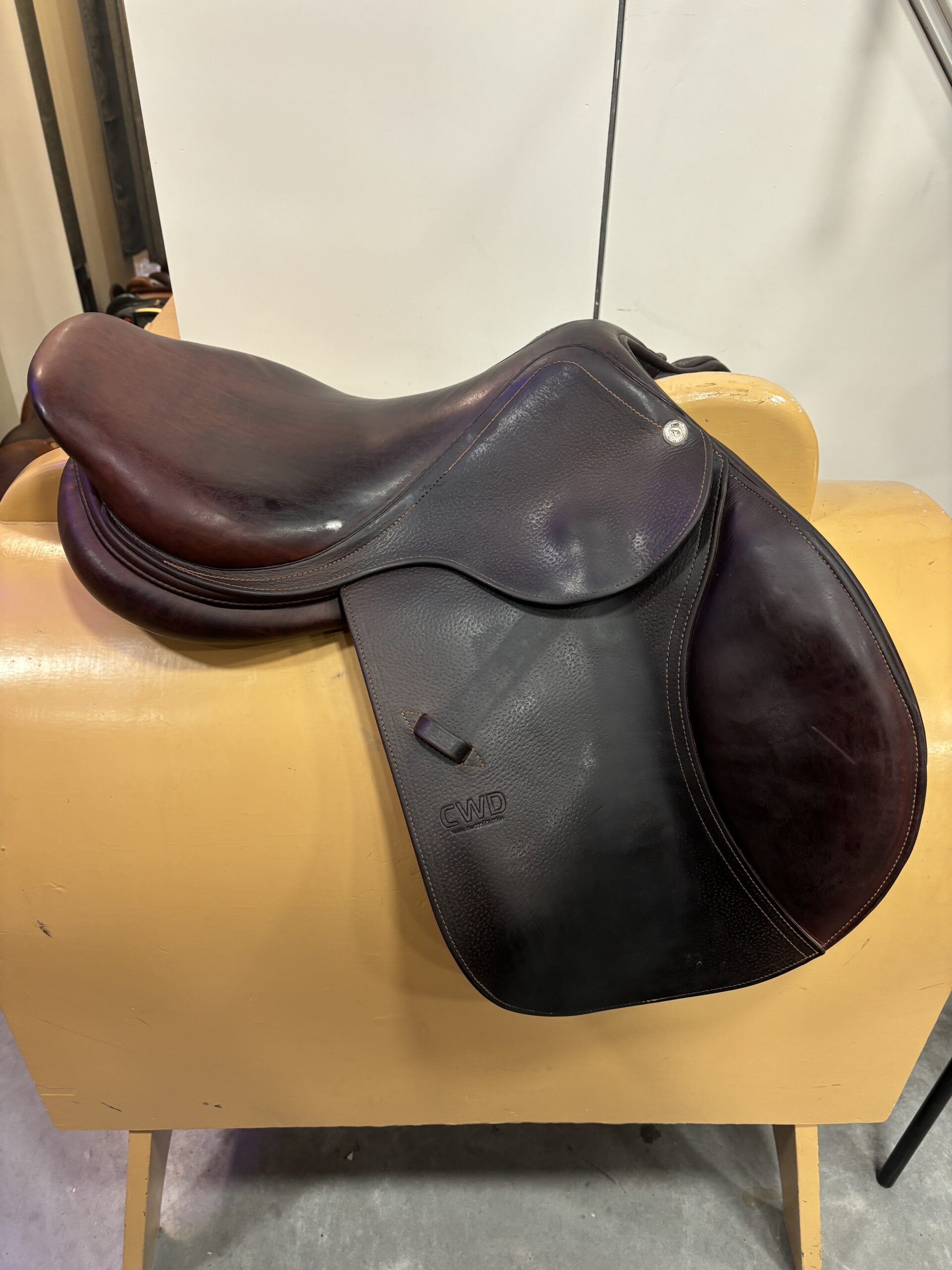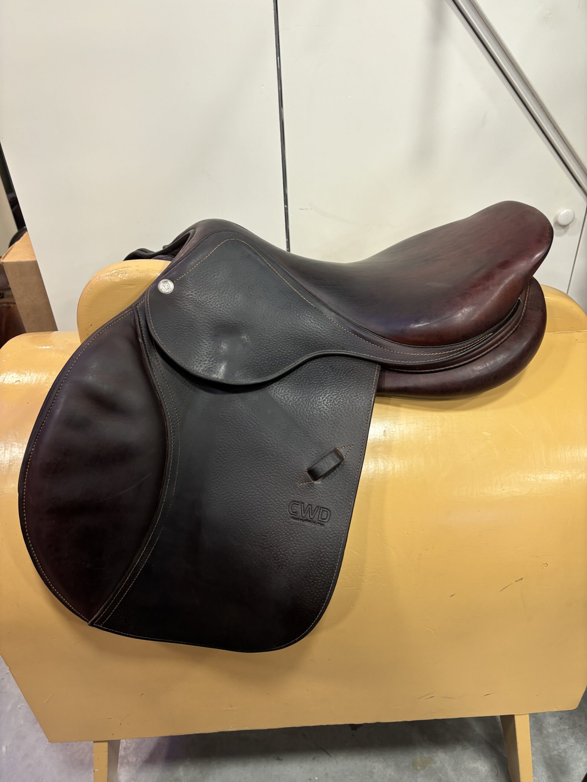 CWD 17 inch springzadel. Boommaat is een 32, medium. Zadel is bruin.