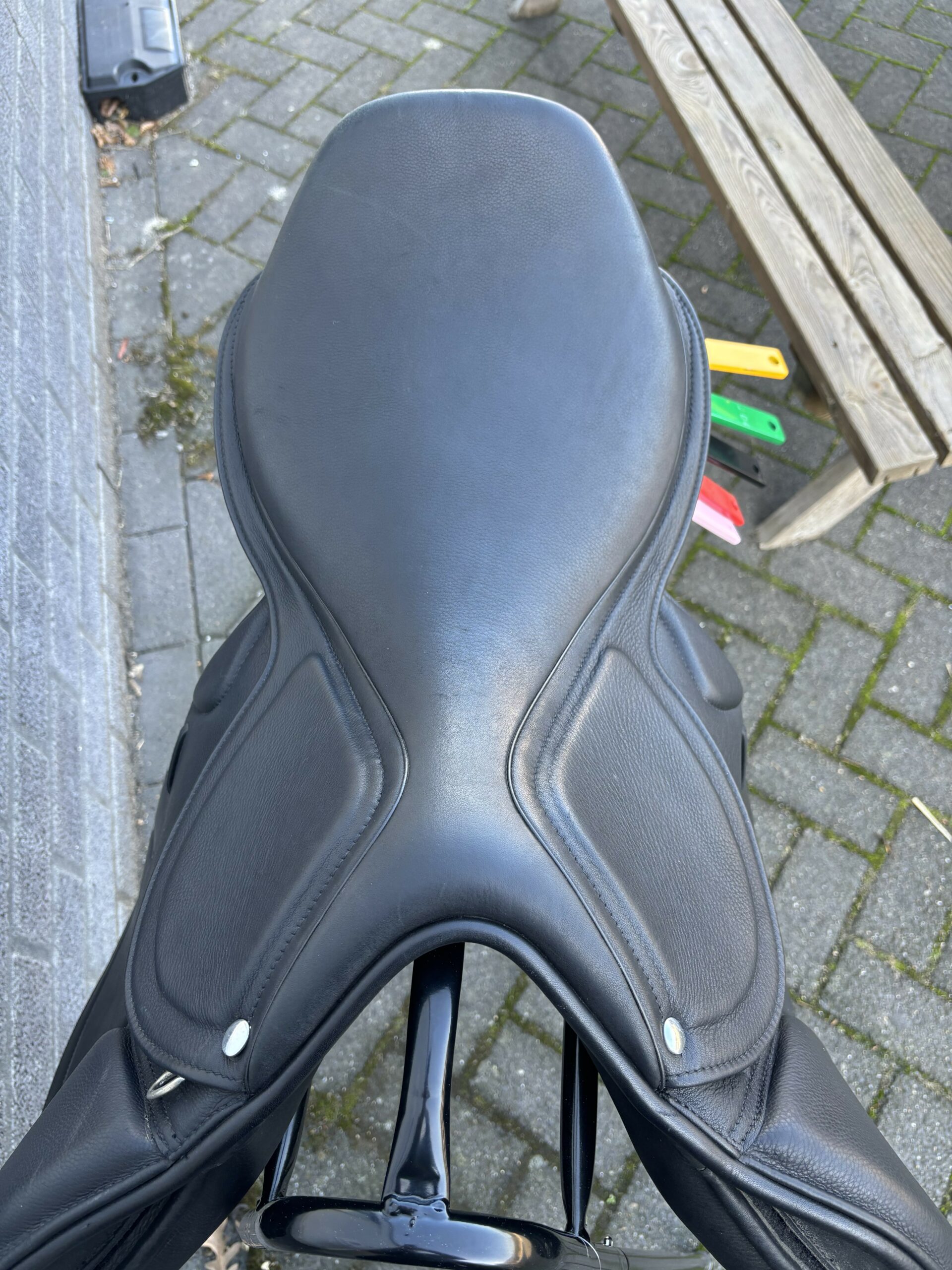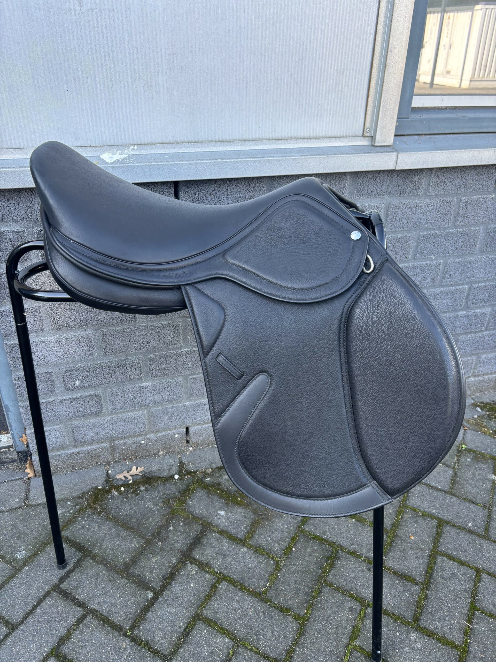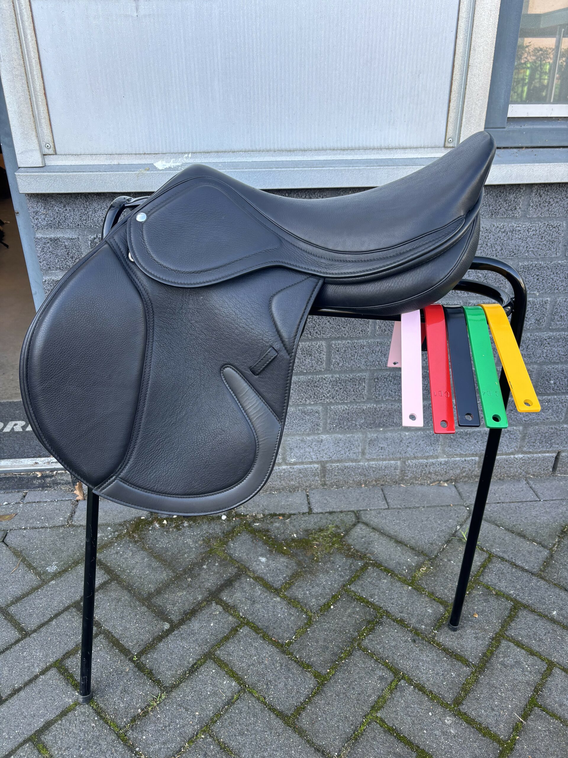 Demo springzadel 18.5 inch, valt meer als 18 inch met een draagvlak van 44cm. Alle maten kopijzers zijn inbegrepen, hierdoor eenvoudig aanpasbaar. Zadel is nieuw, maar gezien de demo valt hij onder de tweedehands voorwaarden . Zadel is zwart .