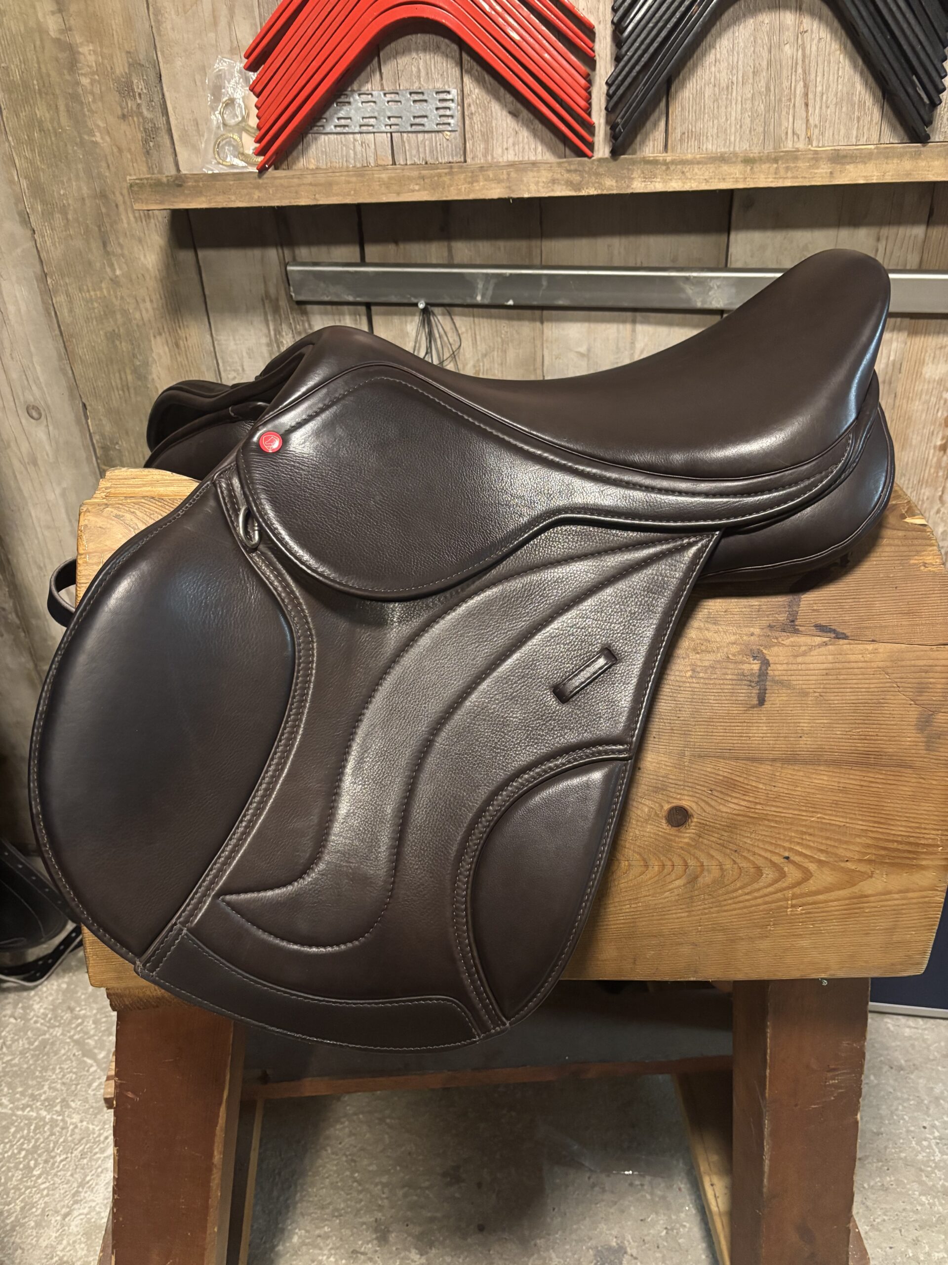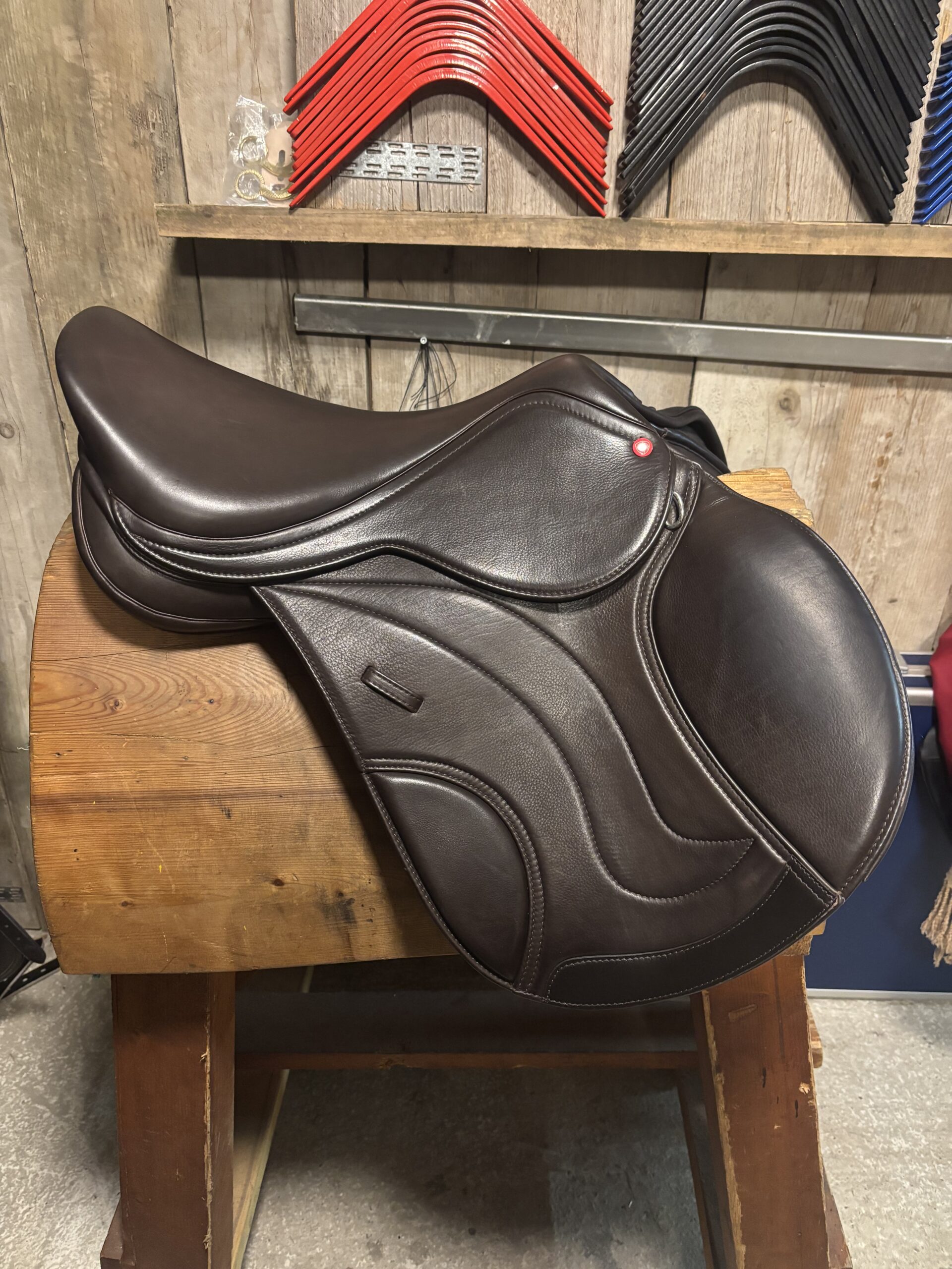 Edix demo 17.5 inch springzadel. Met verwisselbaar kopijzer, alle maten kopijzers inbegrepen. Dit model is (nog) niet uit, gemaakt op flextree. Op demo zadels vanuit Edix geldt geen leergarantie. Zadel is bruin.