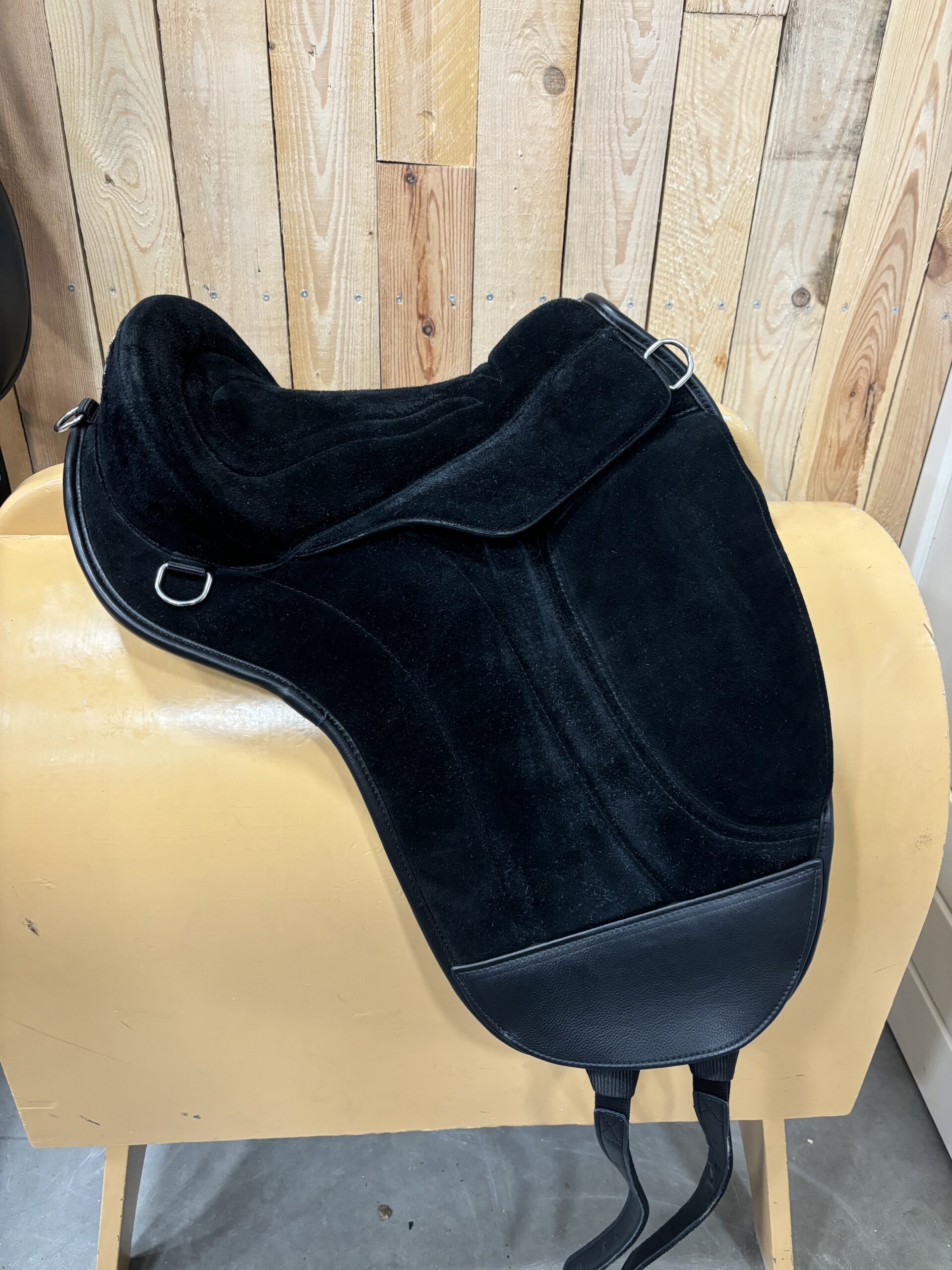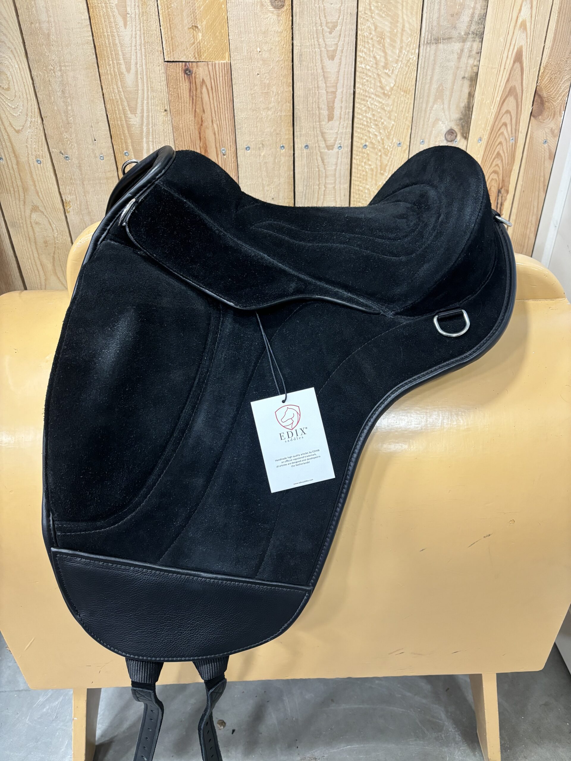 Edix Union boomloos zadel met beugel ophanging en panelen. Geeft steun als een dressuurzadel. 3x gebruikt als paszadel. Moet worden gebruikt met een merino bontje of een Edix pad. Zadel is zwart.