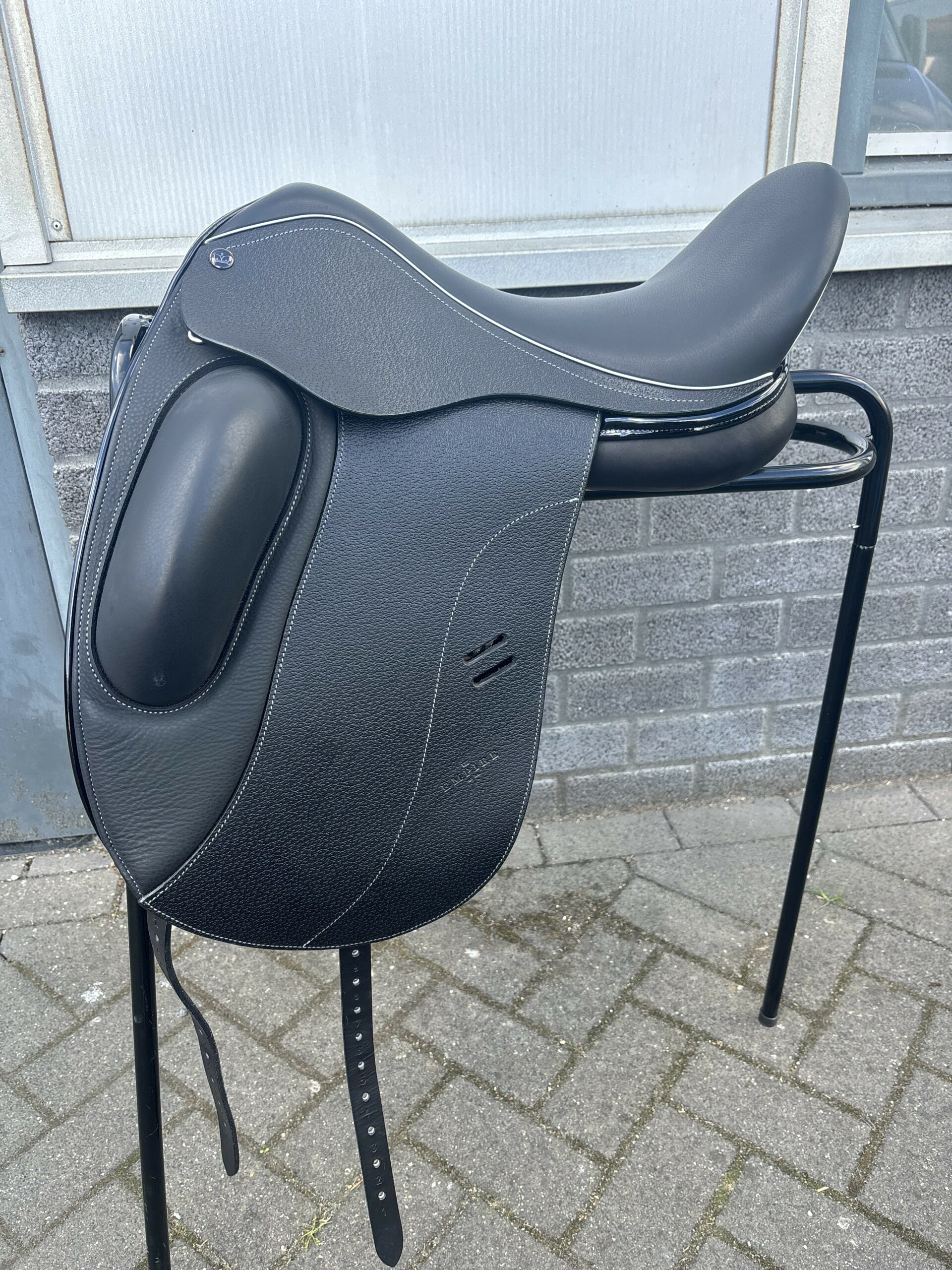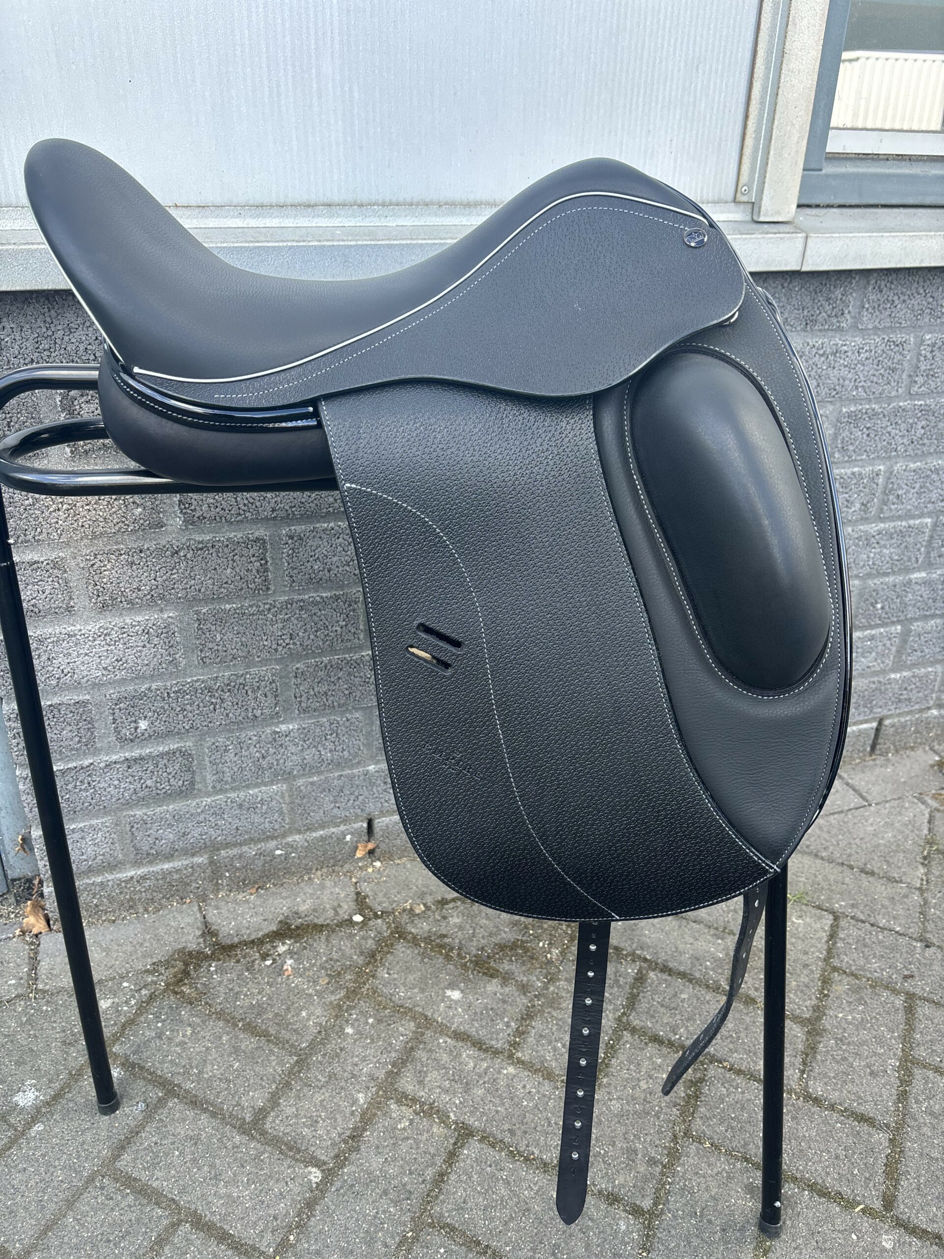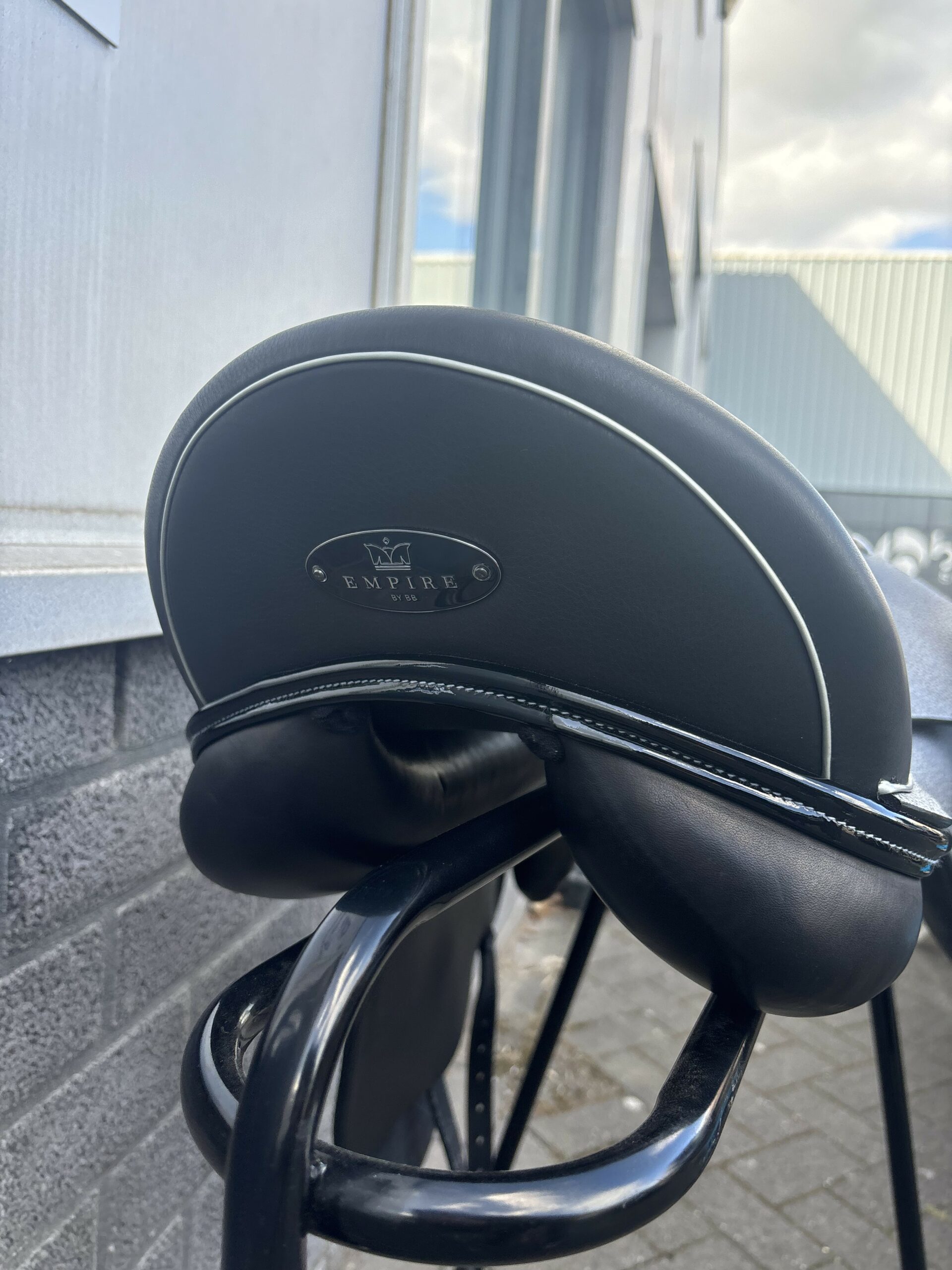 Empire Avanti Dressuurzadel 18 inch met een SB boom. Geschikt voor rondgeribte paarden met een normale tot hoge schoft. Zadel is 1x gebruikt als paszadel. Boommaat staat nu op 25cm, zadel bevat treeclix. Zadel is zwart .