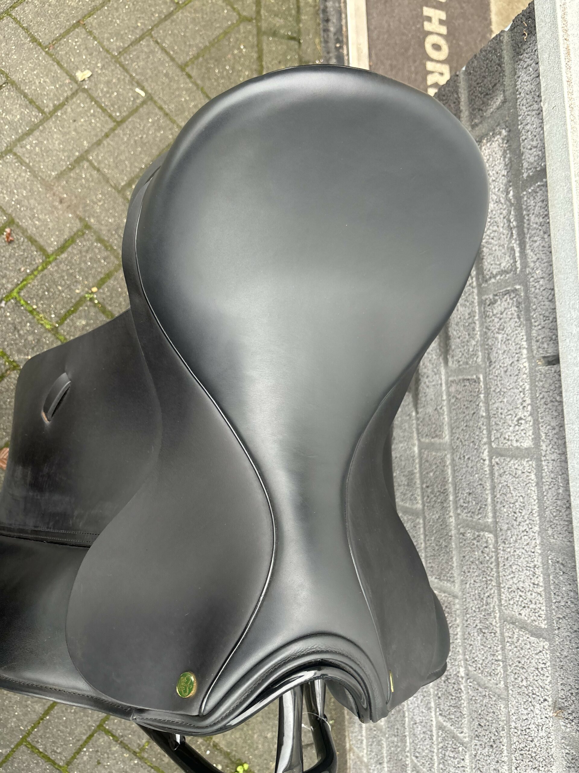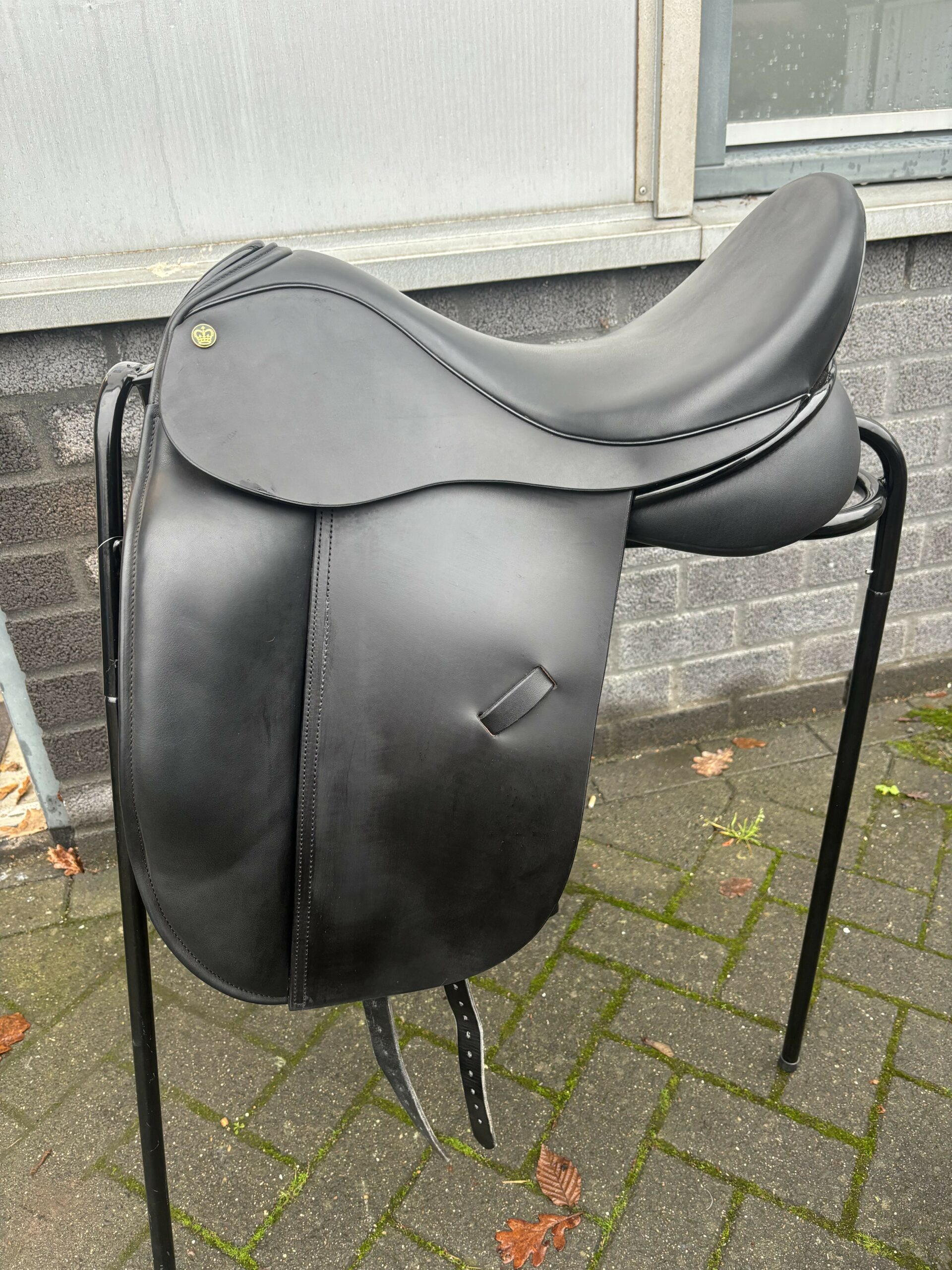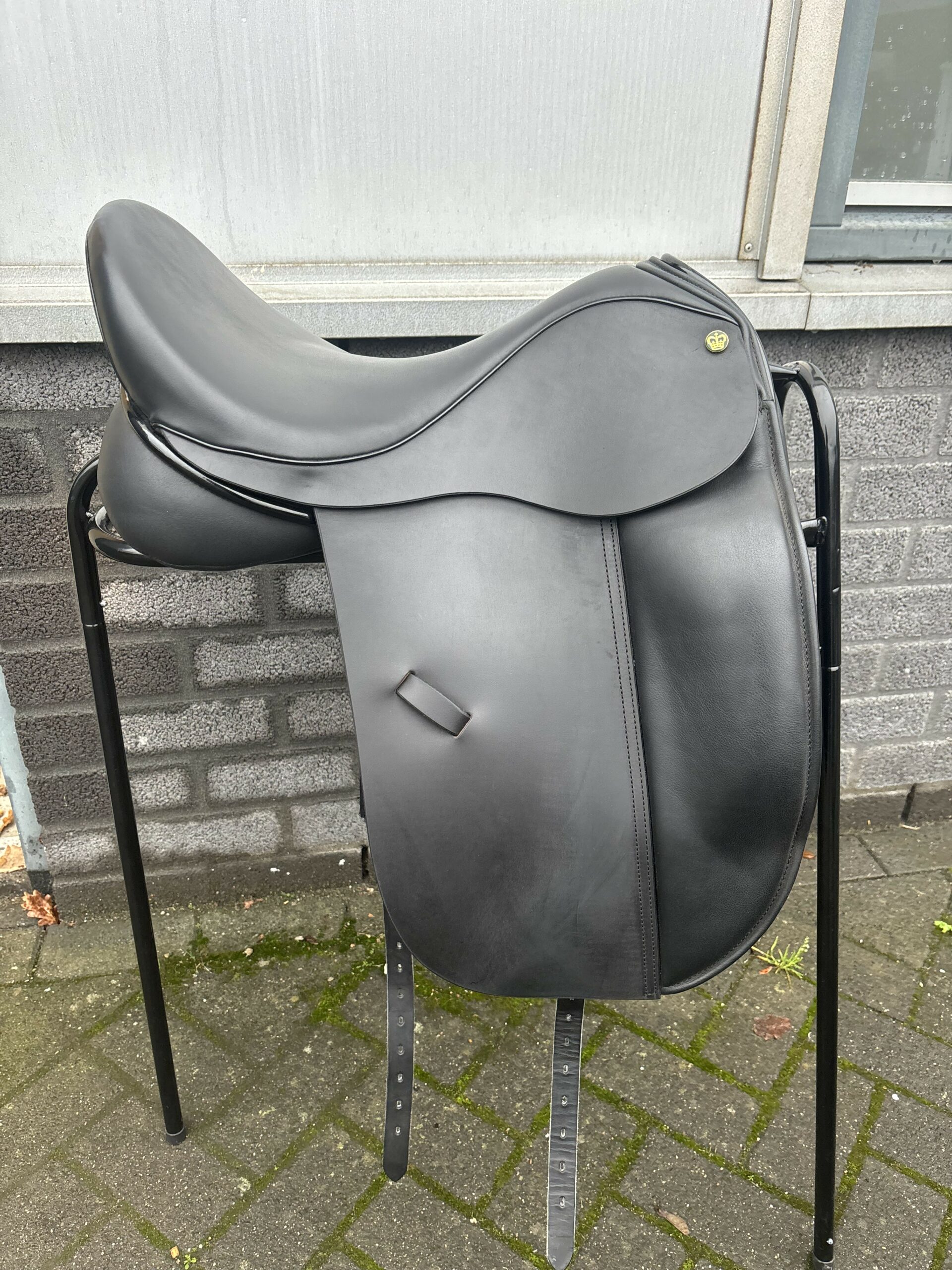 Ideal Suzannah 17.5 inch dressuurzadel. Voor paarden met een hogere schoft. Jacobs wollen vulling, boommaat is medium. Zadel is enkele keren gebruikt als testzadel, praktisch nieuw. Zadel is zwart.