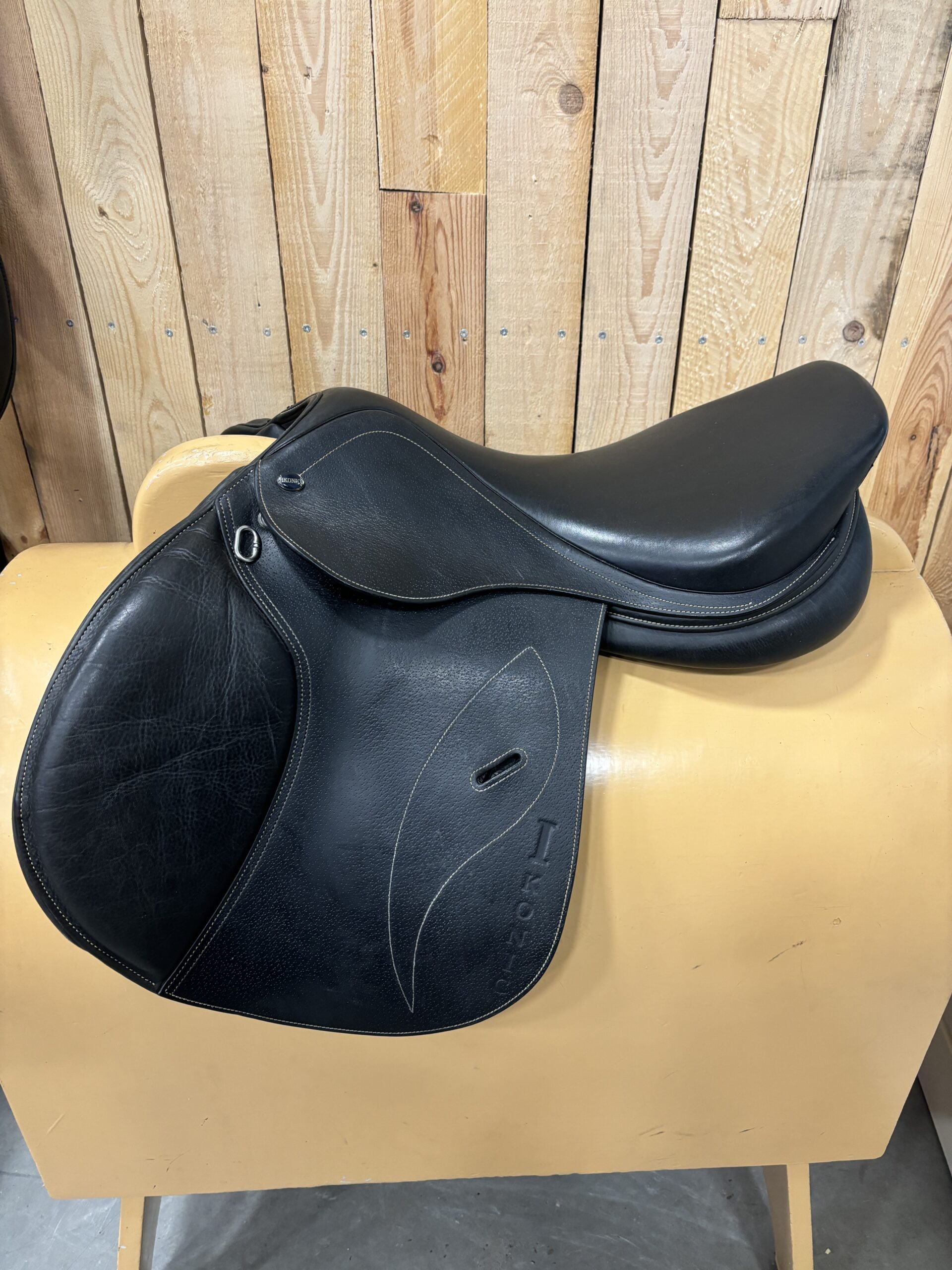 Ikonic 17 inch springzadel. Met verwisselbaar kopijzer, momenteel zit er XW in. Zadel is zwart.