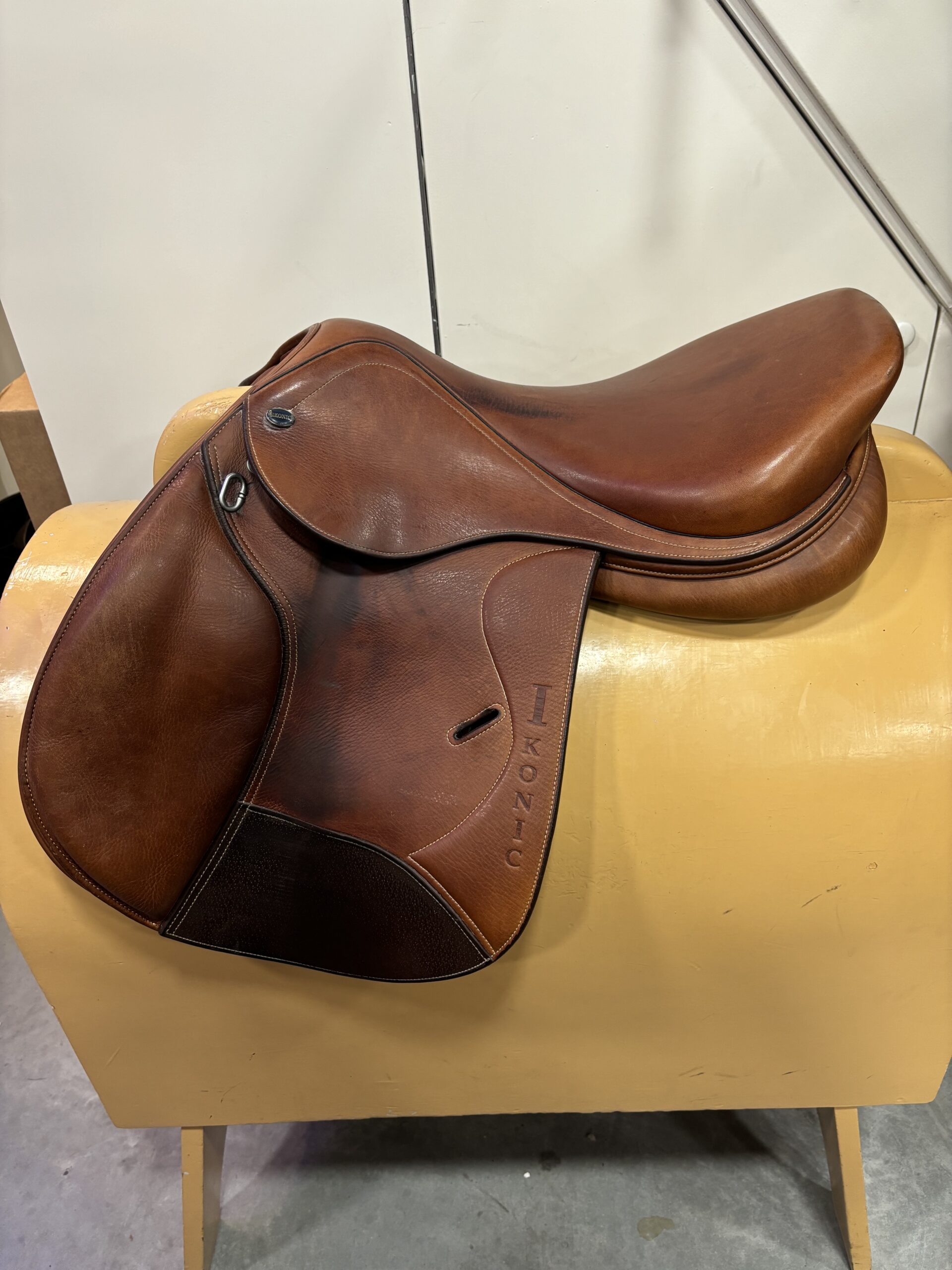 Ikonic 17 inch springzadel. Met verwisselbaar kopijzer, momenteel zit er medium in. Zadel is cognac.