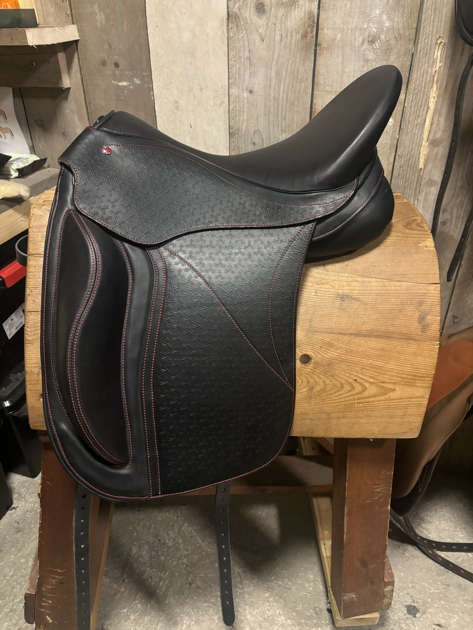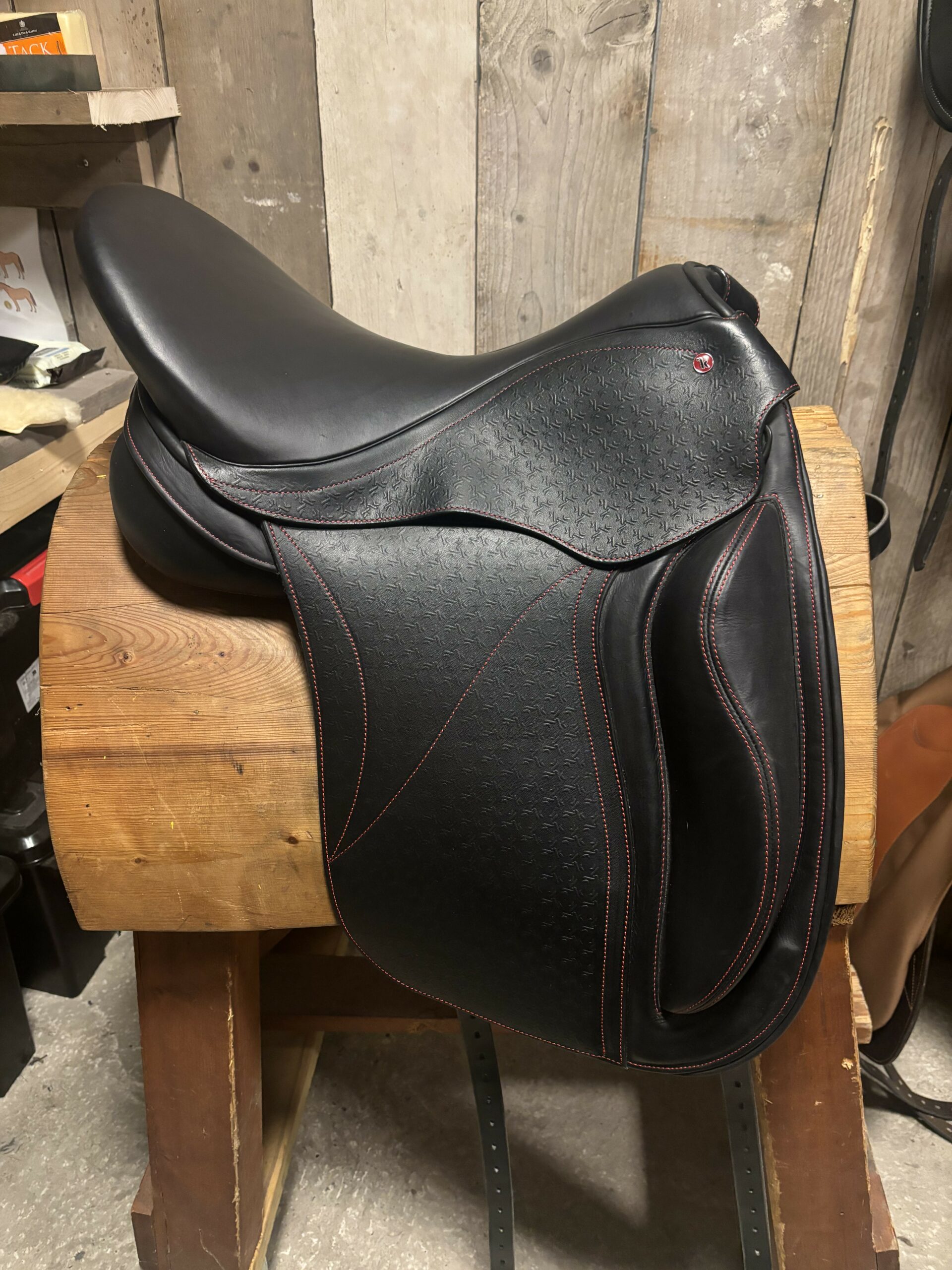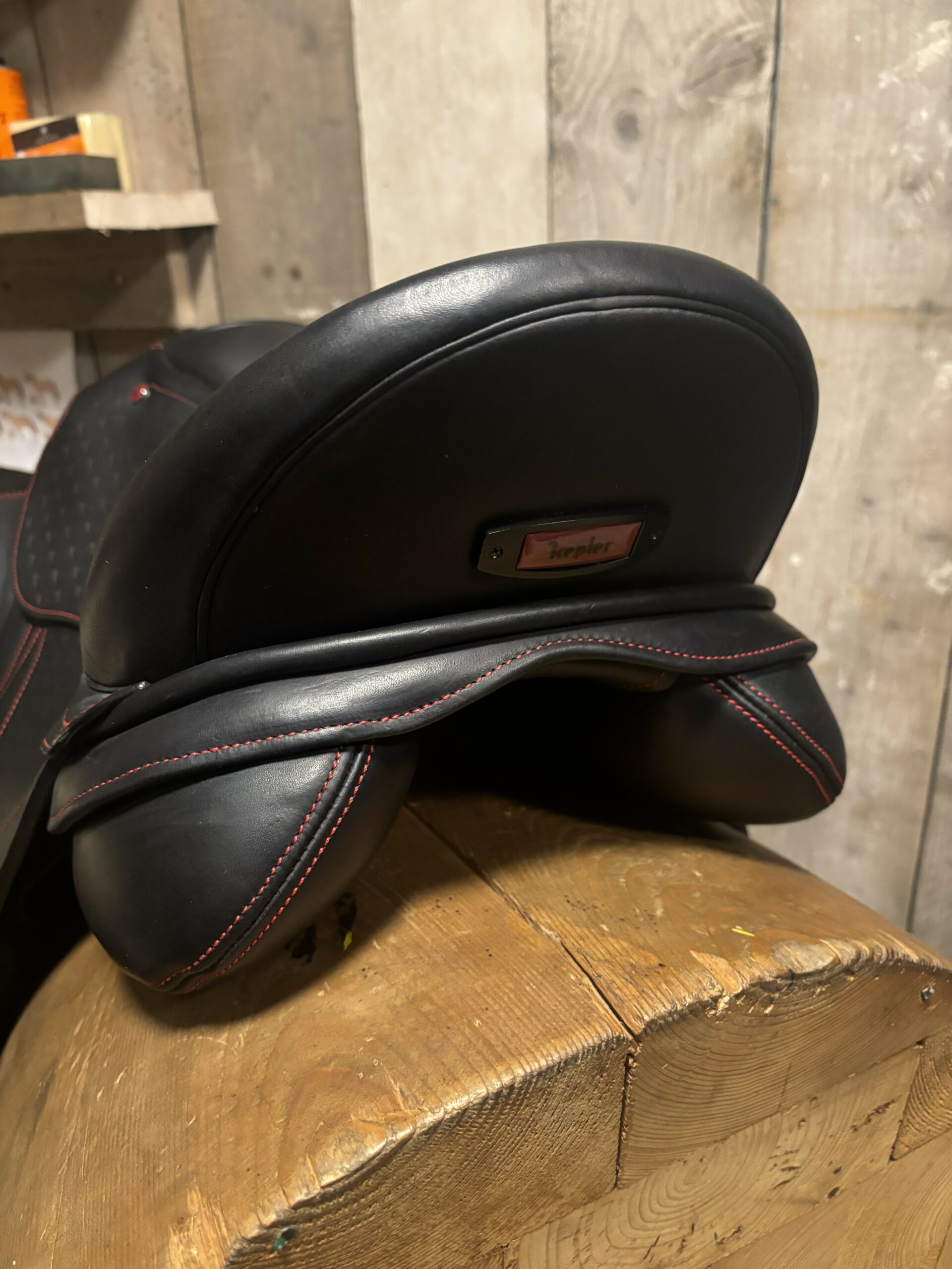 Kepler Dressuur zadel 18 inch met aanpasbaar kopijzers, er worden in totaal 5 maten bijgeleverd. Zadel is geschikt voor rond geribte paarden. Zadel is enkele keren gebruikt als paszadel. Zadel is zwart met rode stiksels .