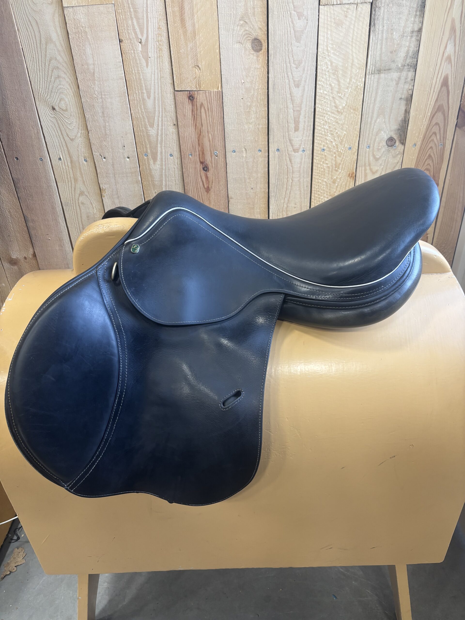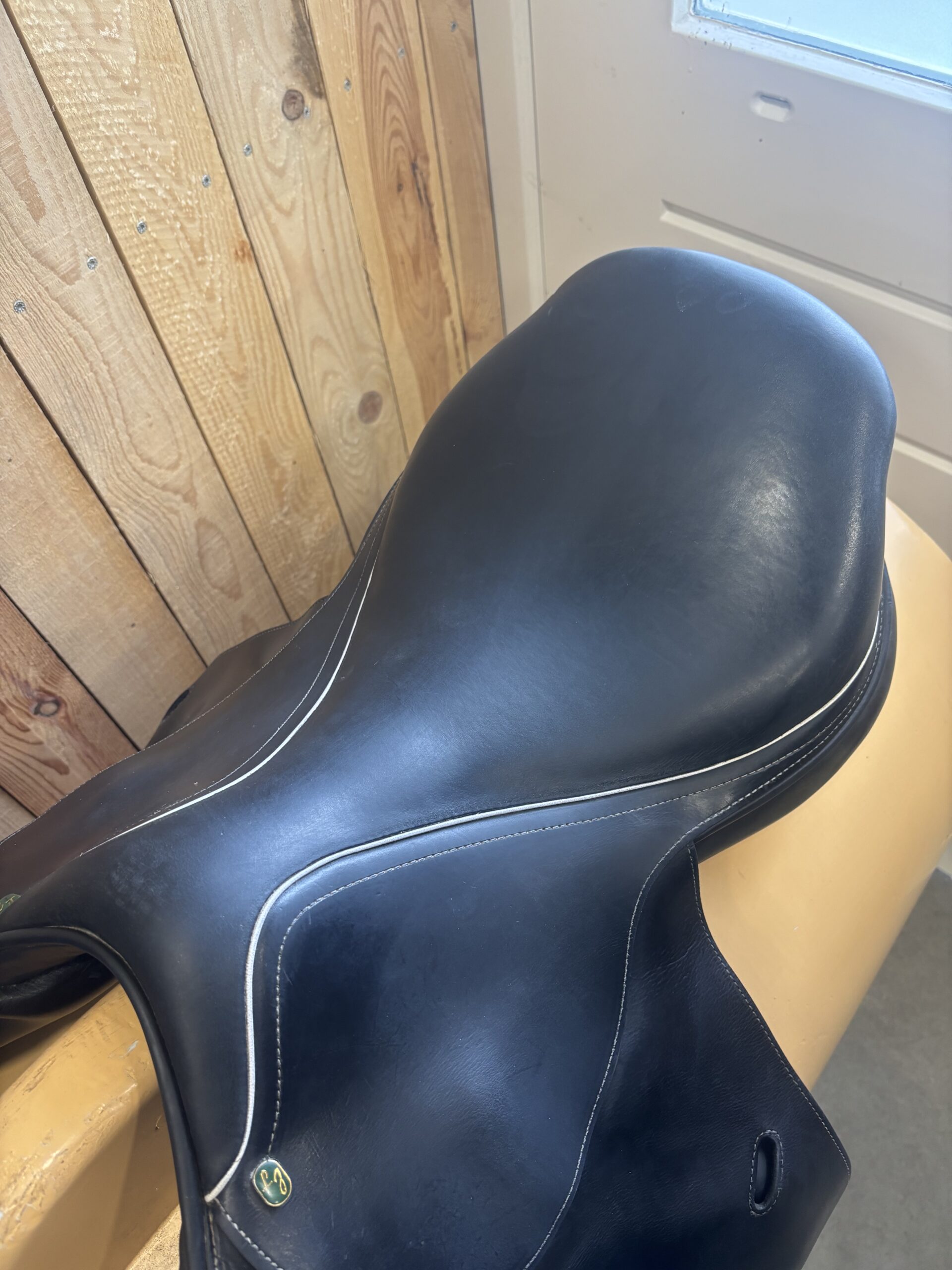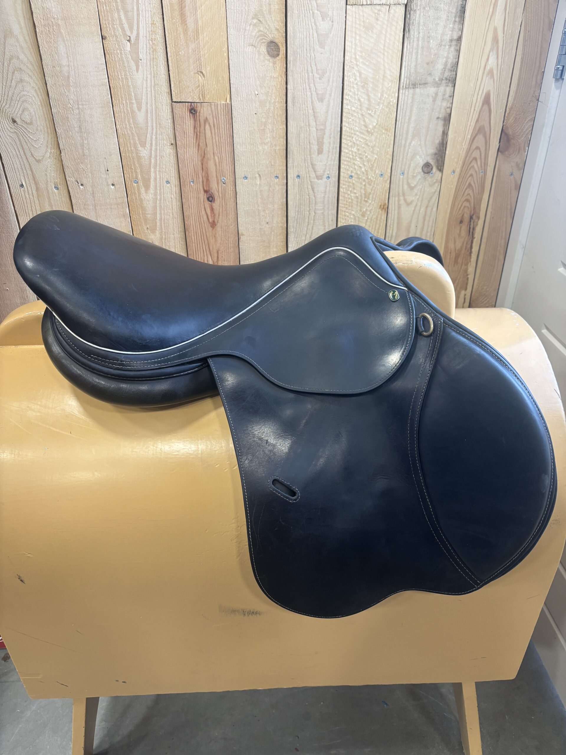 LJ springzadel 17.5 inch. Medium boommaat. Zadel is zwart.