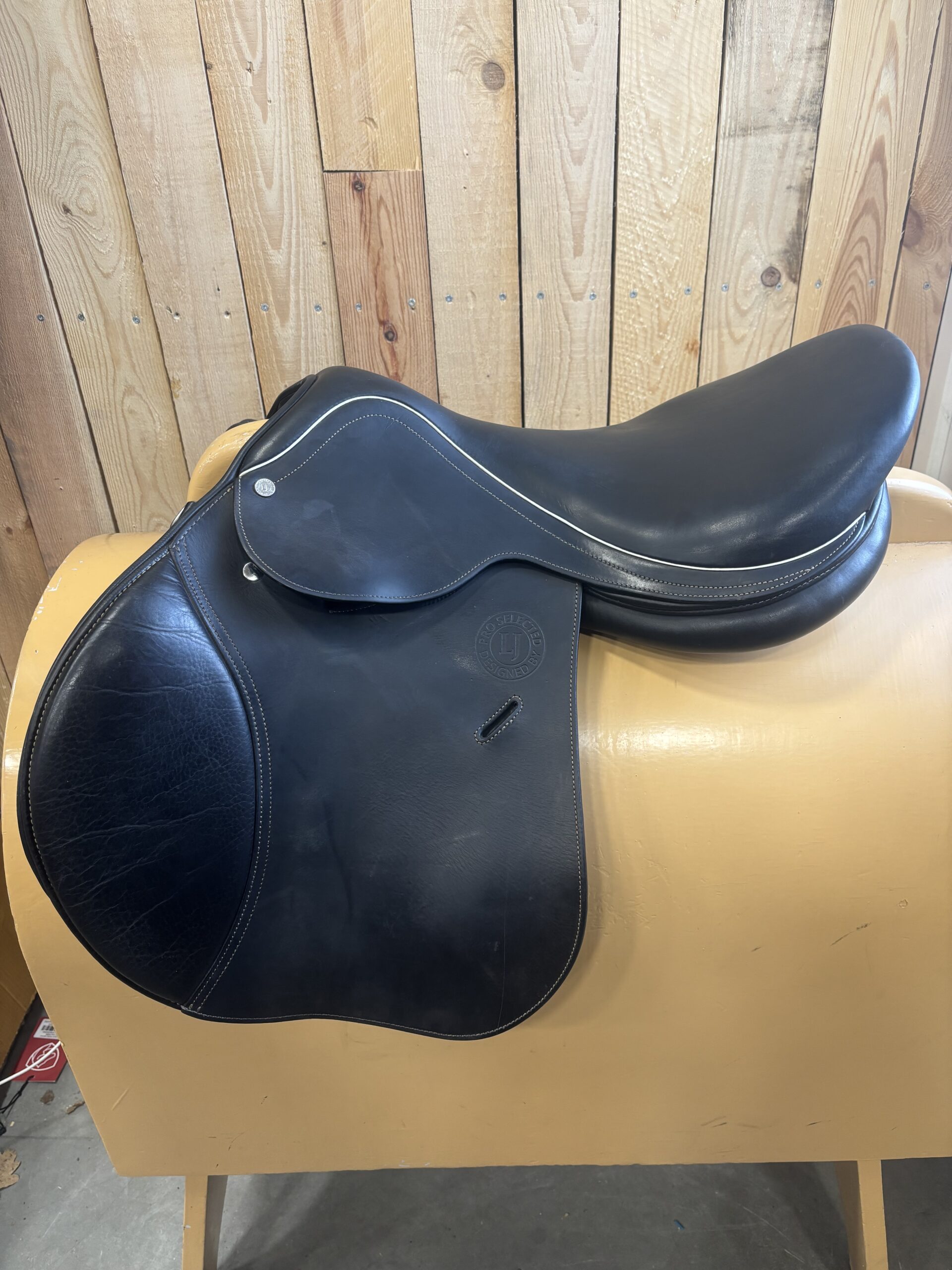LJ springzadel 18 inch. Medium/wide boommaat. Zadel is zwart.