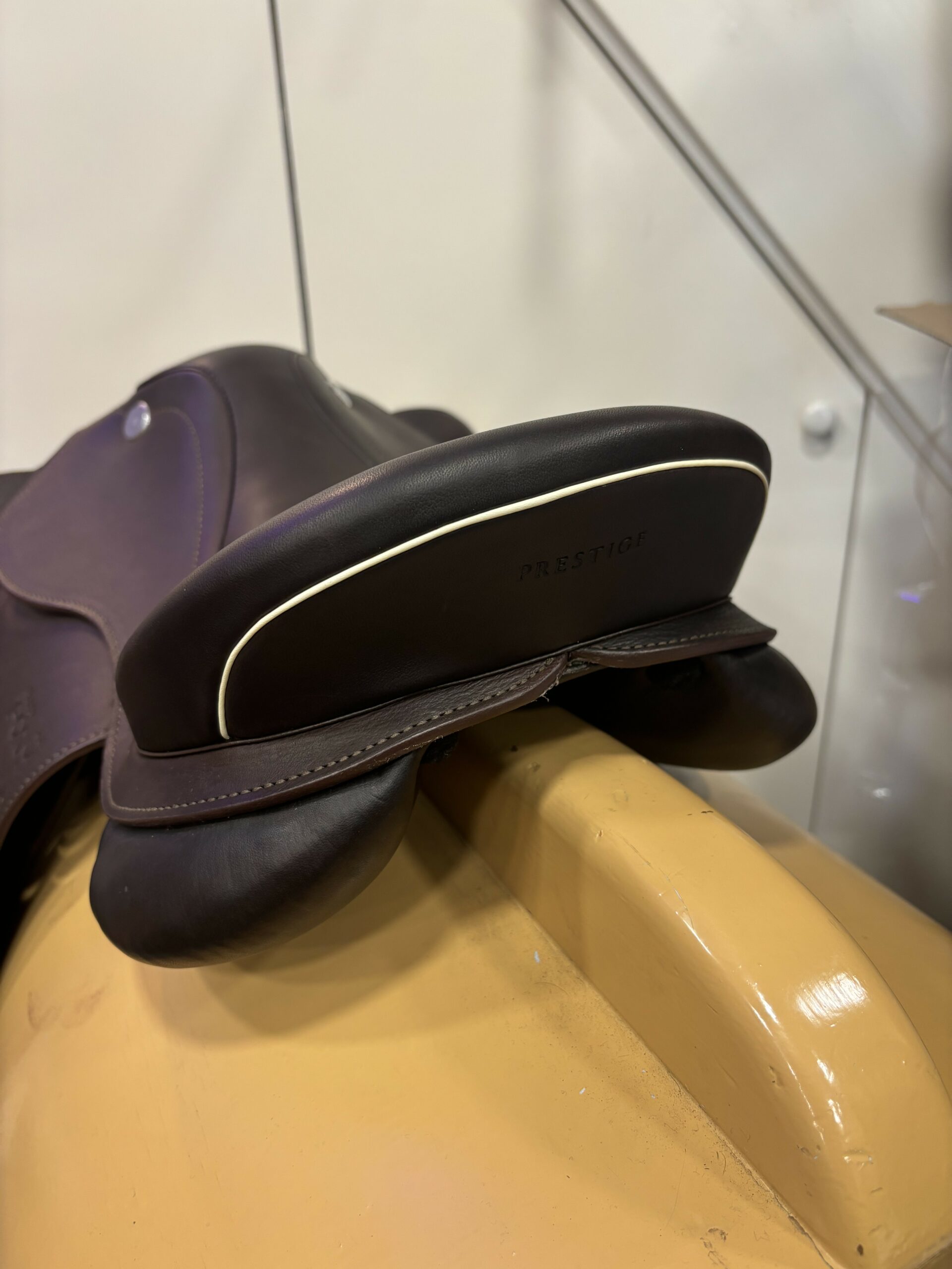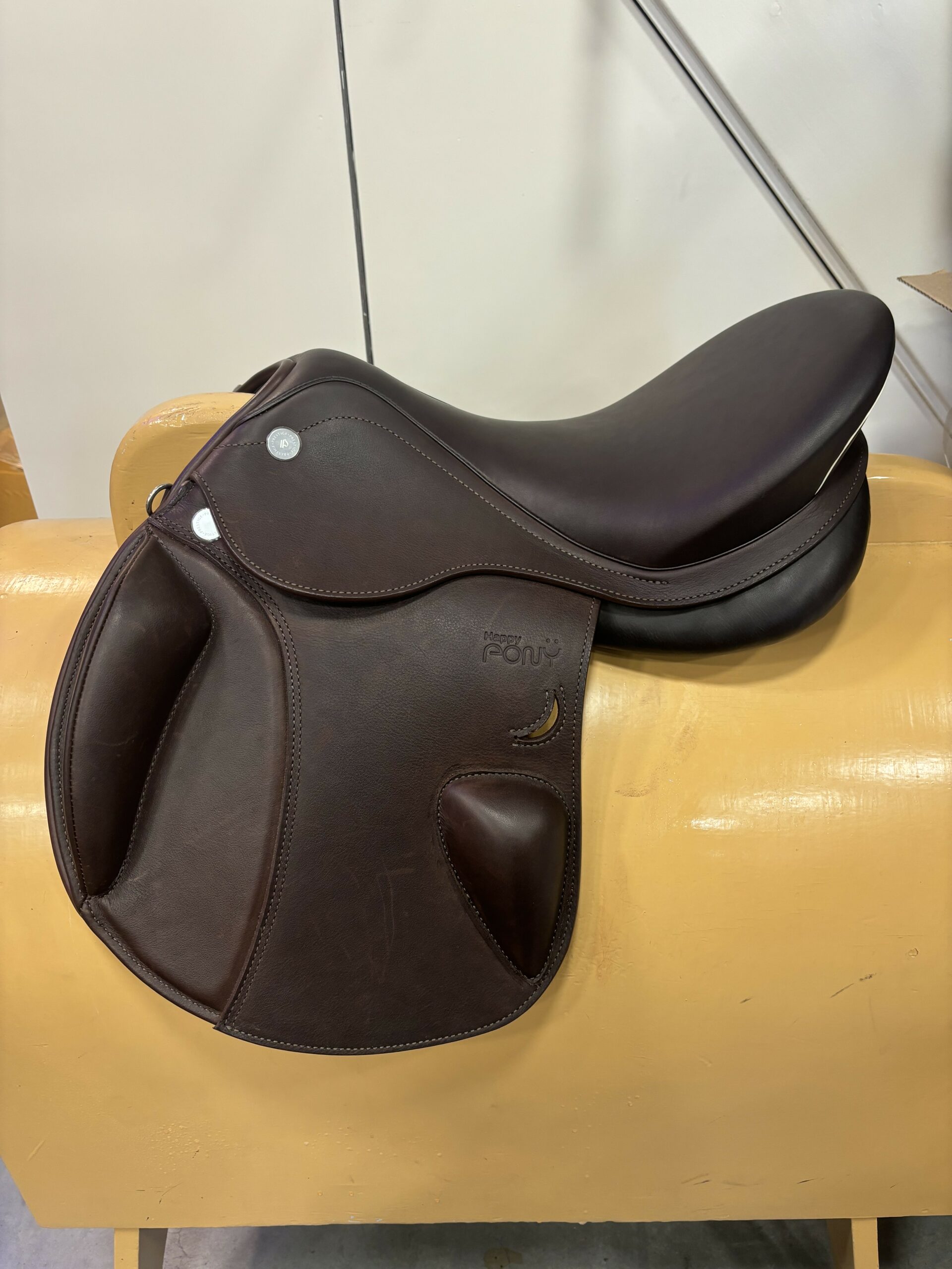Prestiger Happy Pony 15 inch springzadel. Boommaat is 34. Zadel is 2x gebruikt als test zadel. Zadel is bruin.