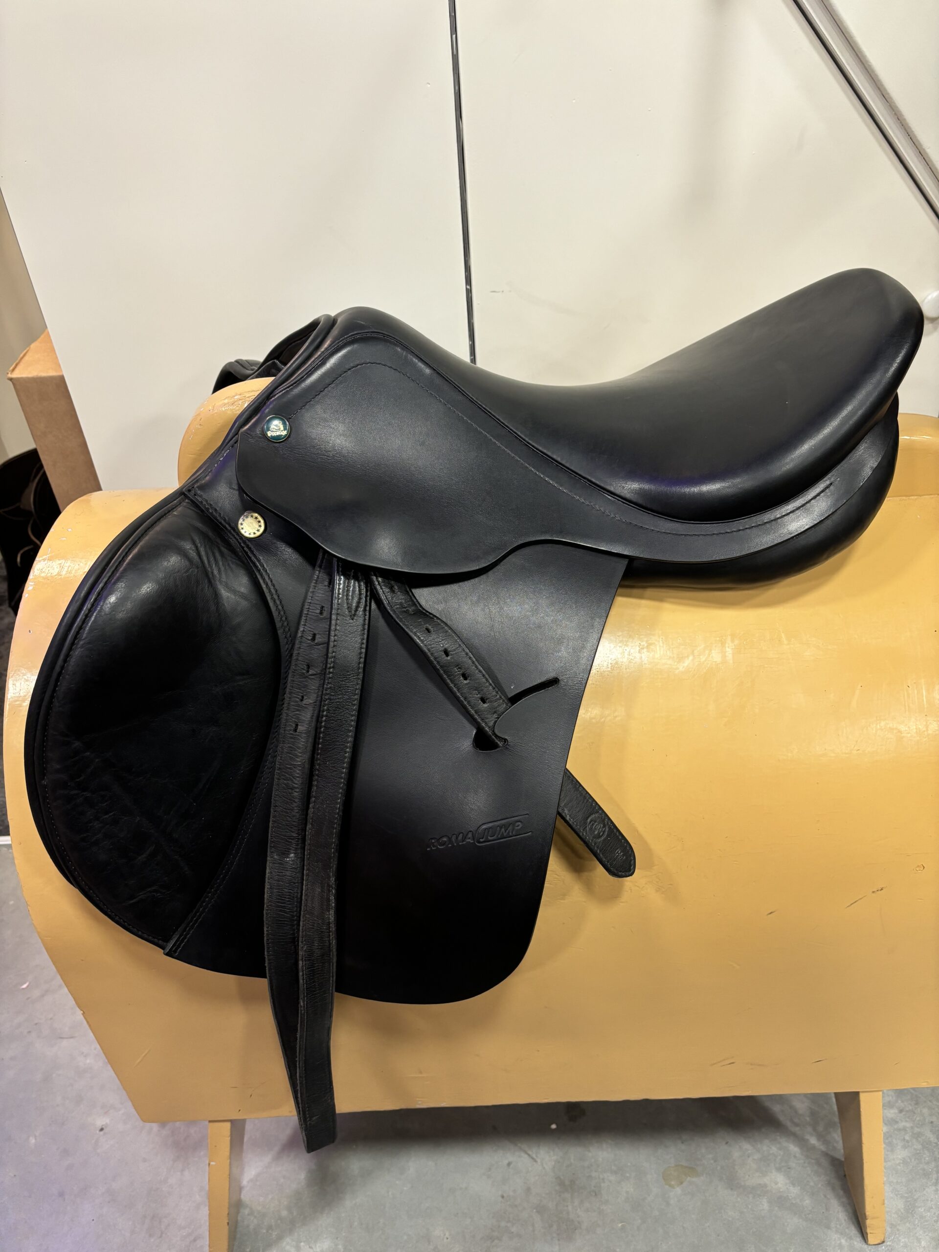 Prestige Roma 17 inch springzadel. Boommaat is een 32, medium. Zadel is zwart.
