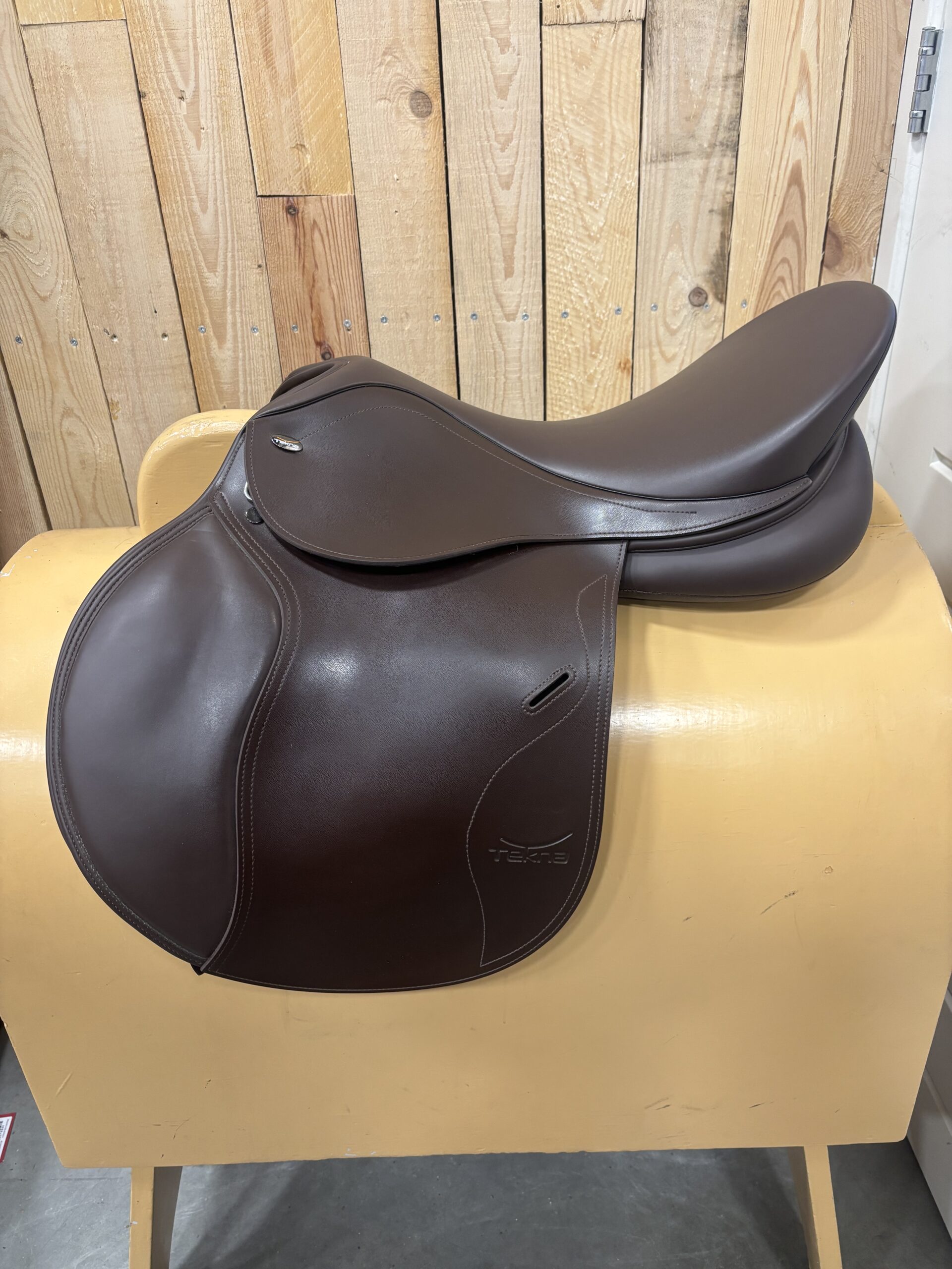 Tekna 17.5 inch veelzijdigheid met een verwisselbaar kopijzer, momenteel zit er wide in. Zadel is bruin.